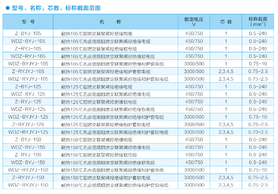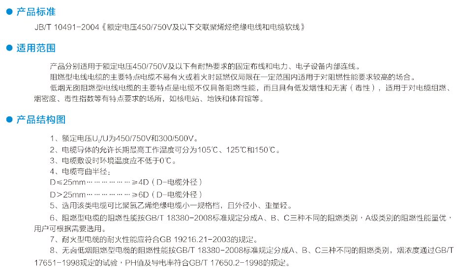 适用于额定电压450/750V及以下有耐热要求的固定布线和电力、电子设备内部连线